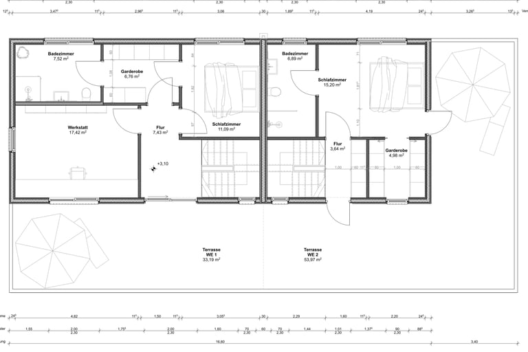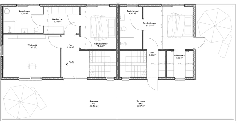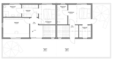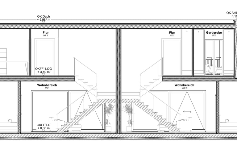 Es werden zwei Wohneinheiten über 2 Etagen geschaffen, mit einer gemeinsamen Terrasse welche nach Süd-West ausgerichtete ist.