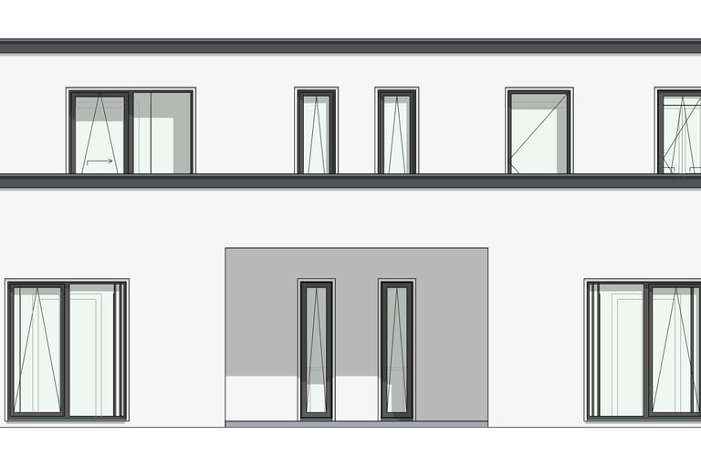 Im hinteren Teil eines Grundstücks in der Stadt Norden ist der Neubau eines Doppelhauses geplant.