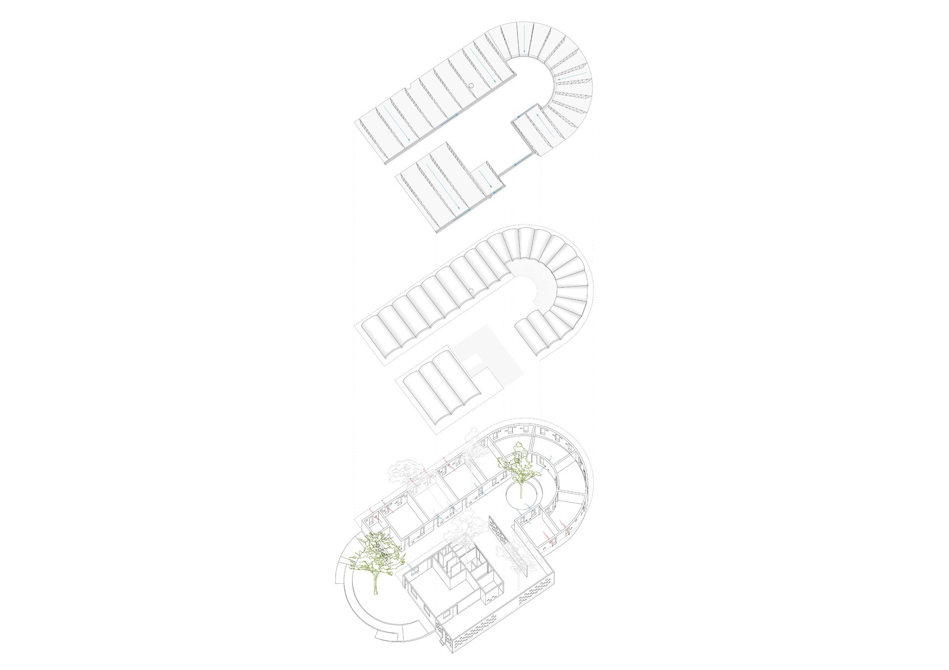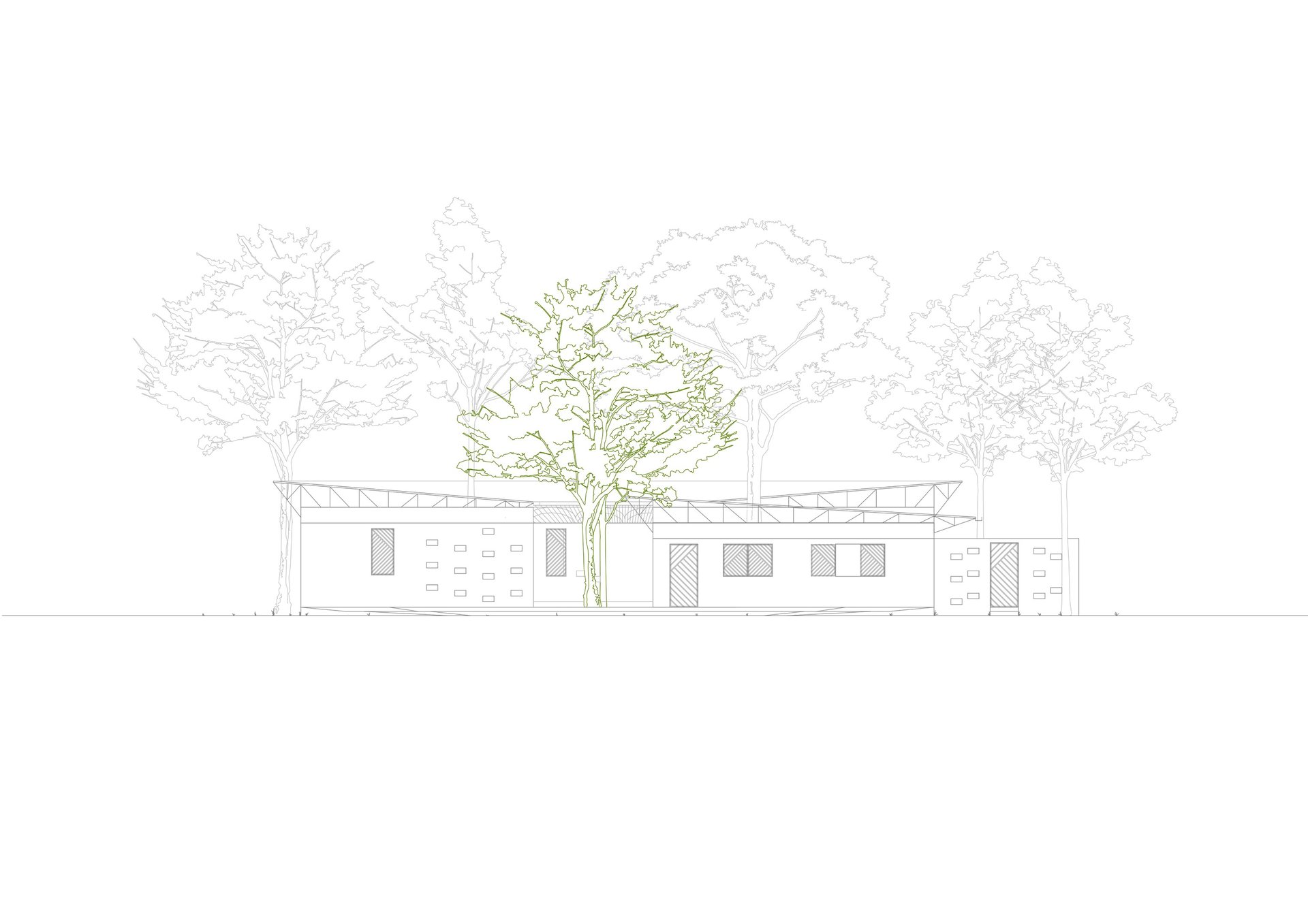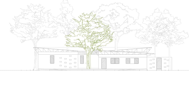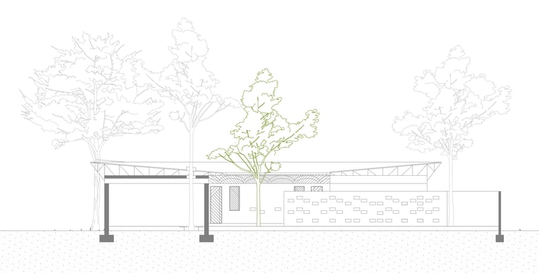 Der Grundriss ist klar strukturiert und schafft durch Bambusbedeckungen der Integration von Bäumen sichere, verschattete Bereiche um Rückzugsorte zu gewährleisten.